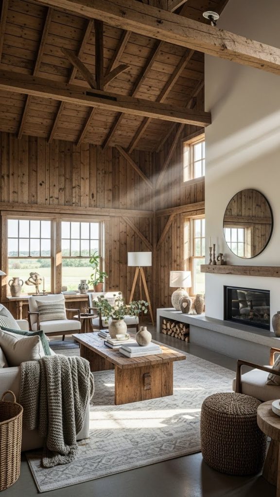 One of the most iconic elements of barn style house decor is reclaimed wood. Old barn wood, distressed planks, or salvaged timber instantly add warmth and authenticity to any space. Using reclaimed wood on walls or ceilings creates a strong rustic foundation for your decor.