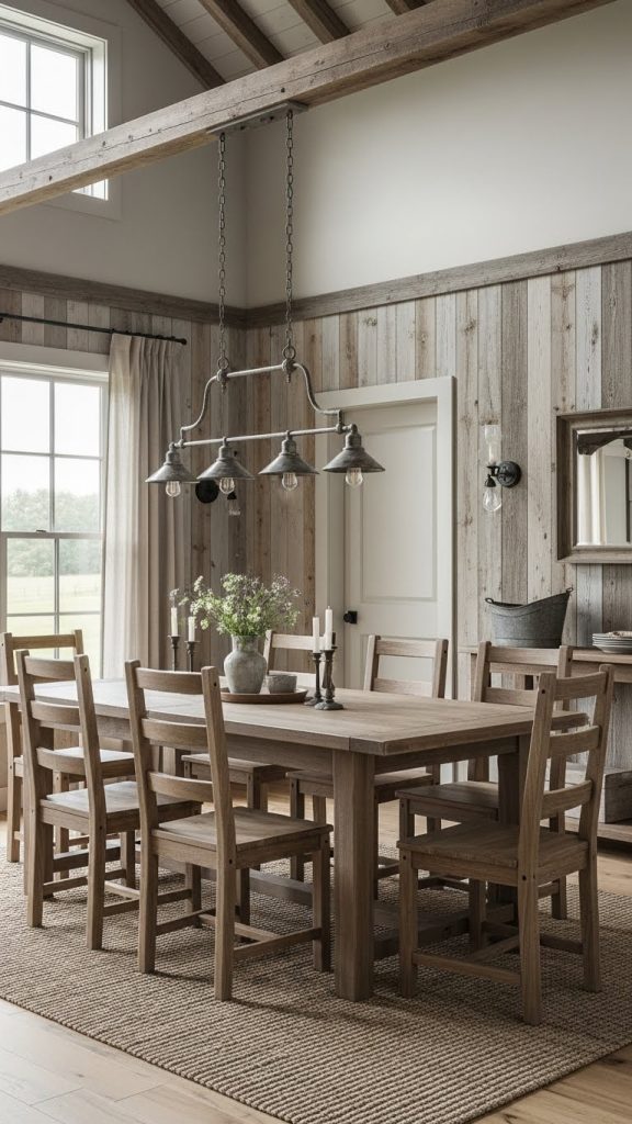 Walls painted in off white or light beige help brighten the space while maintaining a cozy atmosphere. These colors reflect natural light beautifully and pair well with wood elements. Avoid overly cool tones, as barn style decor feels best with warmth.