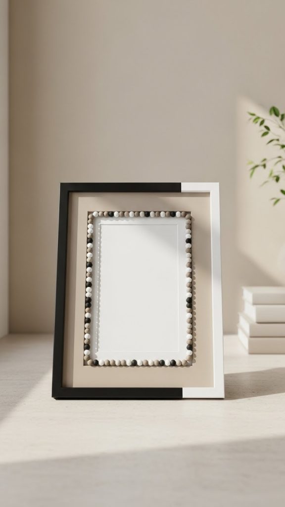 Minimalist beaded frames focus on simplicity and clean design. Instead of covering the entire frame, add a single line of small beads along the inner or outer edge. Choose neutral or monochrome colors like white, black, gray, or soft beige.