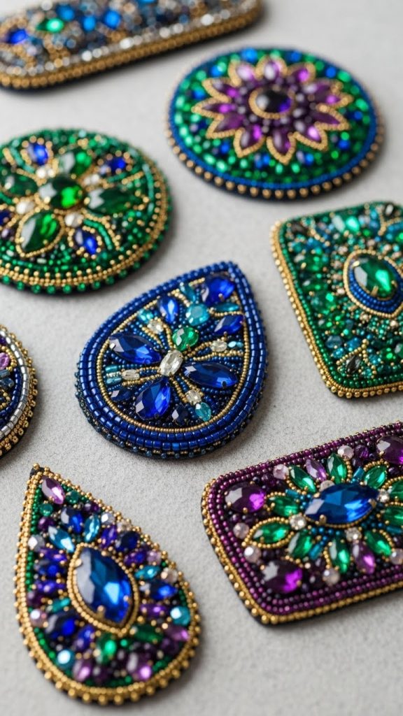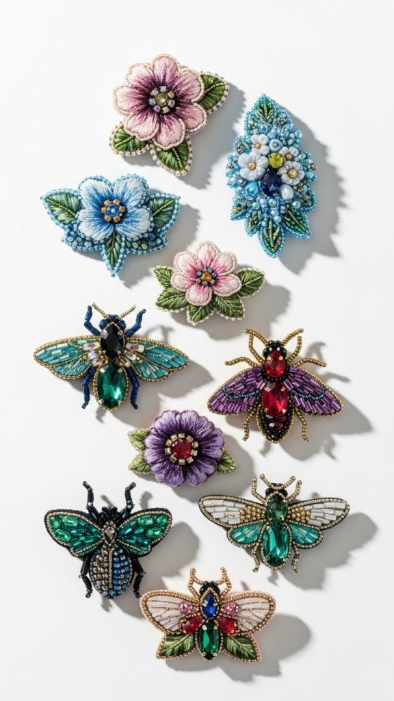 Beaded embroidered brooches are small but impactful projects that allow you to explore detailed beadwork on a manageable scale. These wearable art pieces can be shaped into flowers, insects, abstract forms, or vintage inspired motifs.