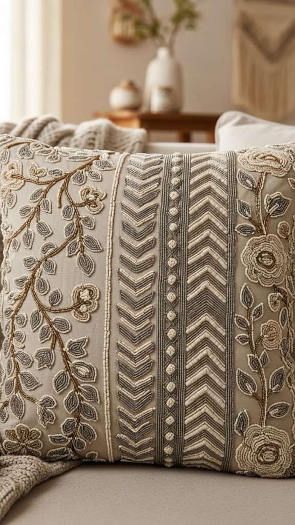 Home decor projects are very popular on Pinterest, and beaded embroidered cushion covers are no exception. These pieces add luxury, texture, and personality to living rooms and bedrooms.