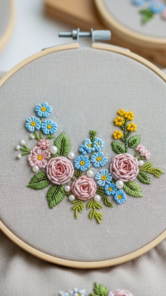 This type of hoop art works beautifully as wall decor, nursery art, or seasonal decorations. You can customize the color palette to match your home decor or create themed pieces such as spring florals, wildflowers, or romantic roses.
