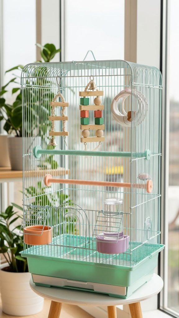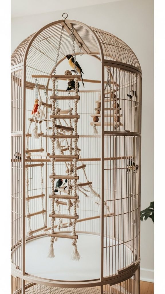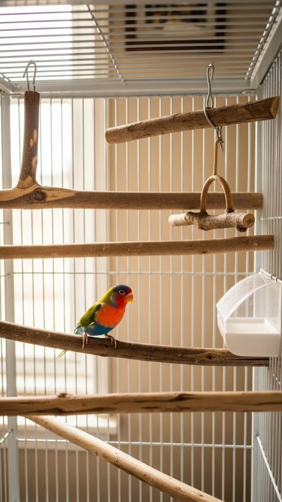 Arrange items so your bird can climb, swing, and hop between levels. This not only improves physical health but also reduces boredom. Choose natural materials and soft colors to maintain a cohesive look.