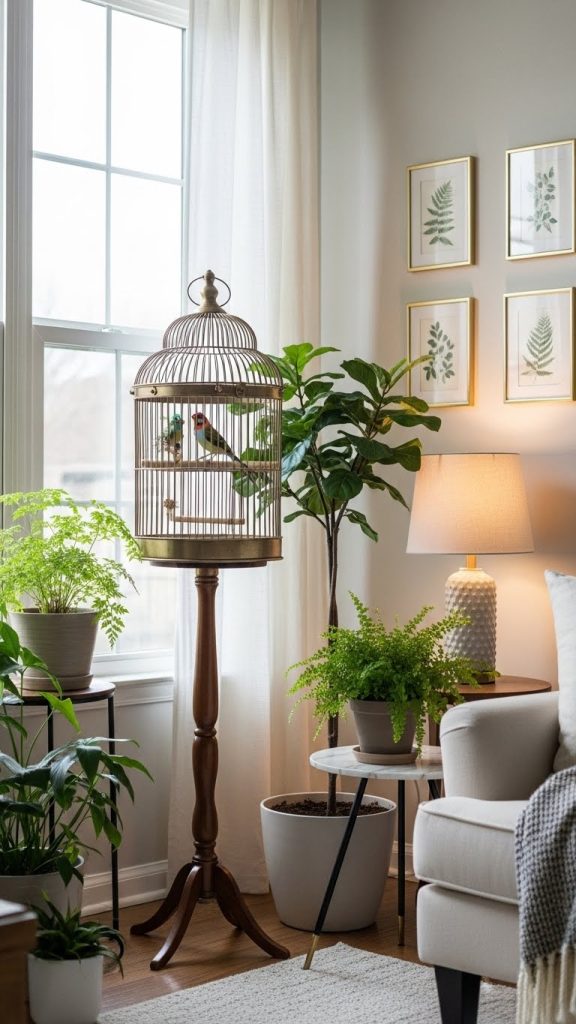 This creates a dedicated bird corner that feels harmonious and thoughtfully designed. Your bird cage becomes part of your home story rather than an afterthought.