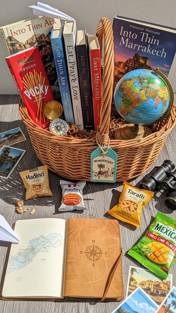 For readers who love to explore the world through books, a travel and adventure basket is a great option. Include novels or travel memoirs that whisk readers away to different countries or exciting adventures. Add travel-themed items like a world map, a small travel journal, a luggage tag, or a mini compass. You can also include exotic teas or snacks from different countries to enhance the immersive experience.