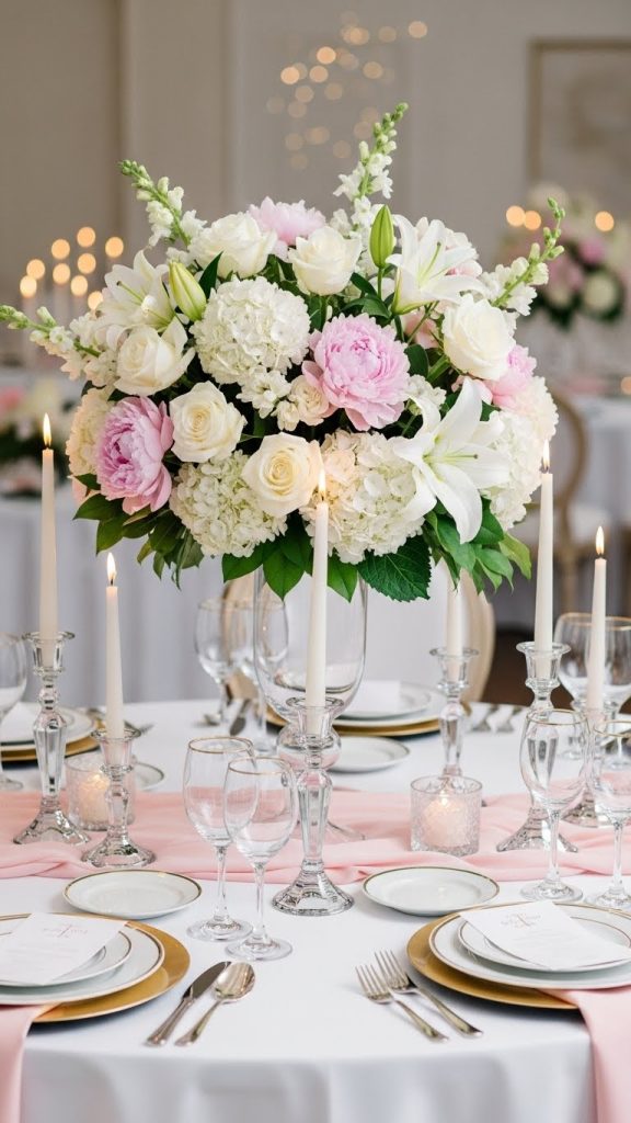 Classic floral centerpieces work well for couples who love traditional beauty and want a simple yet elegant centerpiece that never goes out of style.