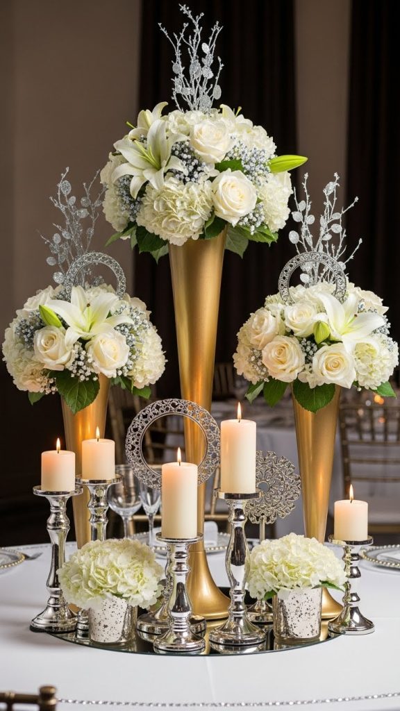 7. Metallic Centerpieces for Milestone Anniversaries