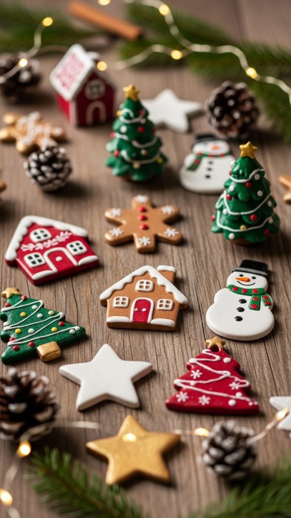 One popular idea is to create flat clay cutouts in the shape of Christmas trees and add decorative details like layered branches, ornaments, and stars. You can also attach magnets or string to turn them into fridge decor or hanging ornaments.
