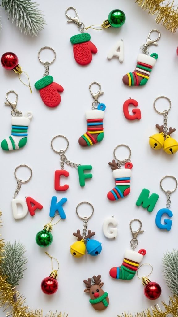 Clay keychains are easy to make, lightweight, and incredibly customizable. You can shape them into holiday icons like Christmas stockings, mittens, Santa hats, reindeer heads, bells, and holly leaves. For personal gifts, consider adding initials, zodiac signs, monograms, or custom symbols.