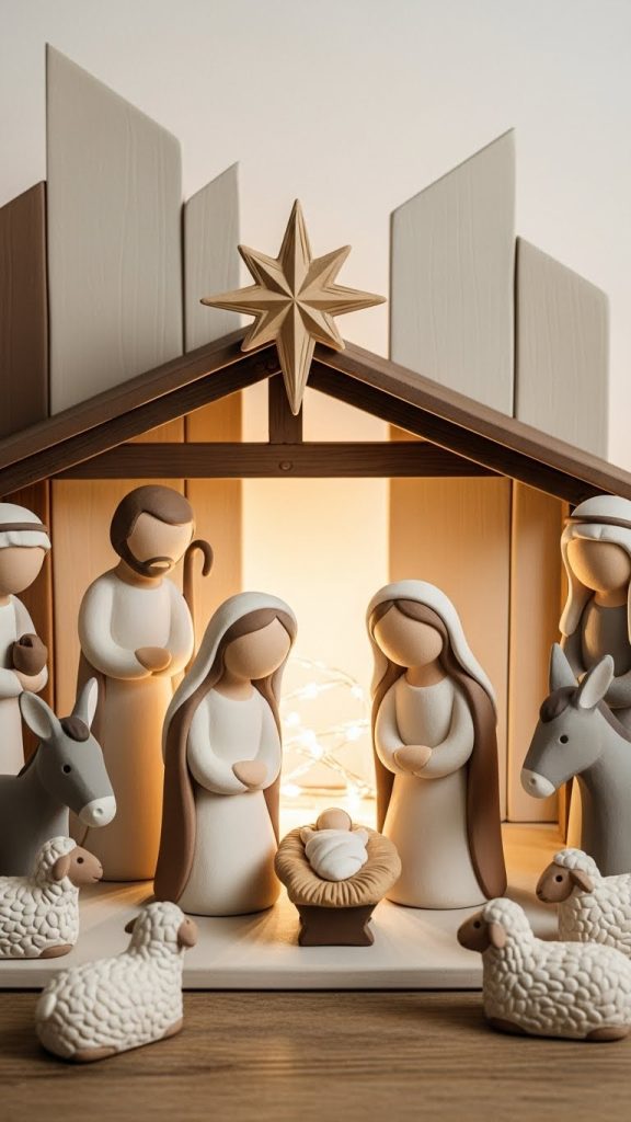 Once dried, paint the figures in soft neutral colors or traditional tones. A full miniature nativity set becomes a cherished keepsake that families can display year after year.