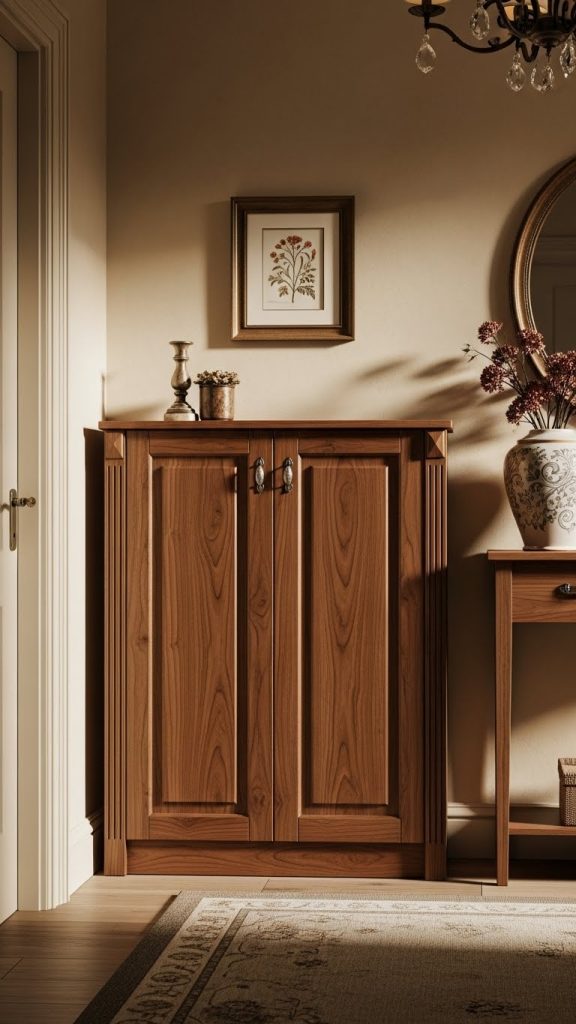 Placed near the main entrance or in a hallway, a wooden closed shoe rack adds both functionality and timeless style.