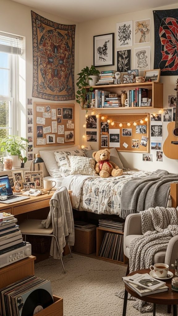 Wall decor is where creativity shines. Create a gallery wall with photos, posters, and artwork. Use washi tape or removable adhesives to stay dorm friendly. A corkboard or pinboard can display inspiration, notes, and memories.