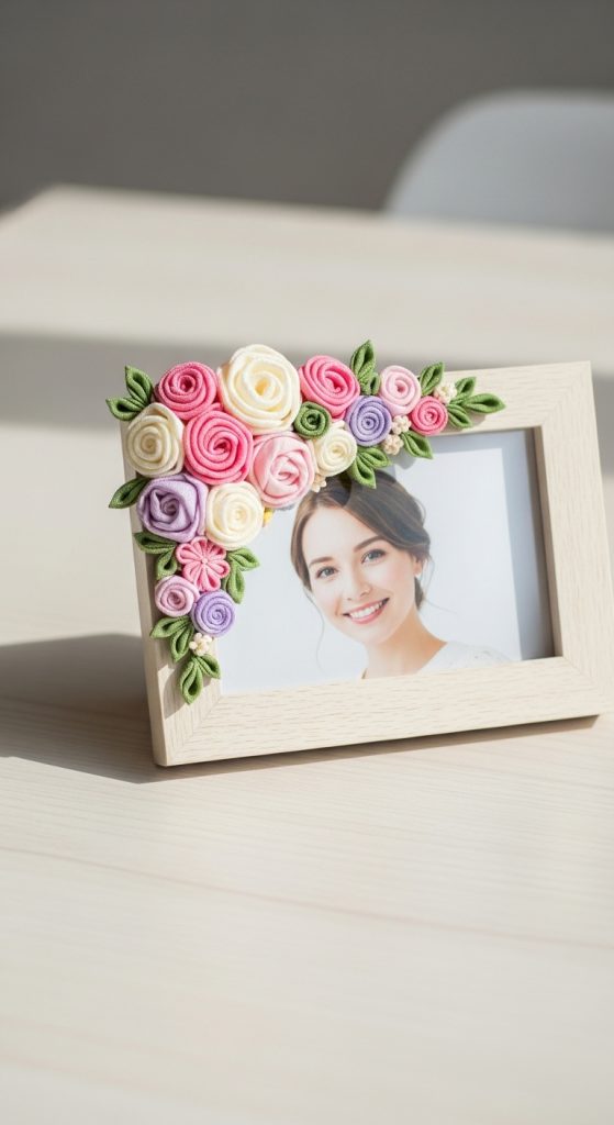 You can choose to keep it simple with only two or three flowers, or create a full floral border. These frames make wonderful handmade gifts for friends and family. They work well for bedroom decor, entry tables, and gallery walls. Using a neutral color palette helps the frame blend with various styles, but bright colors can make it pop.