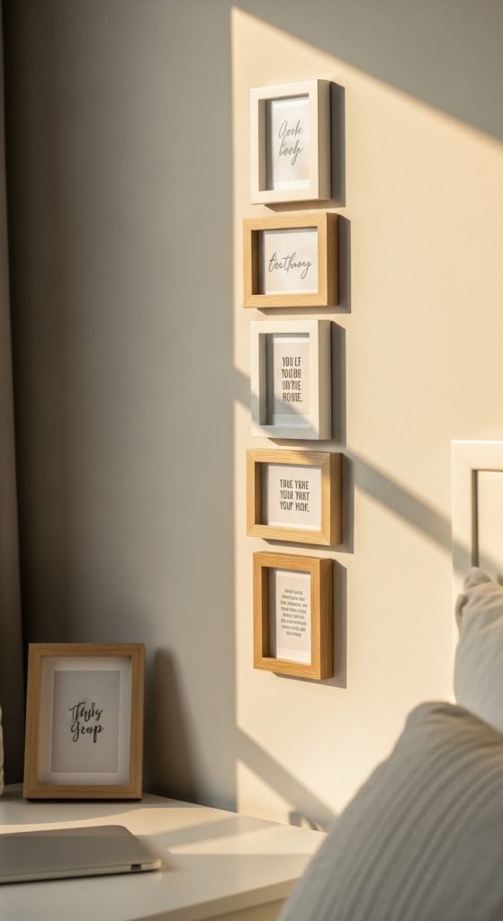 A mini photo wall charm set adds personality and memories to your space. Instead of large wall galleries, use small frames or miniature prints arranged on a hanging rod or in a vertical sequence.