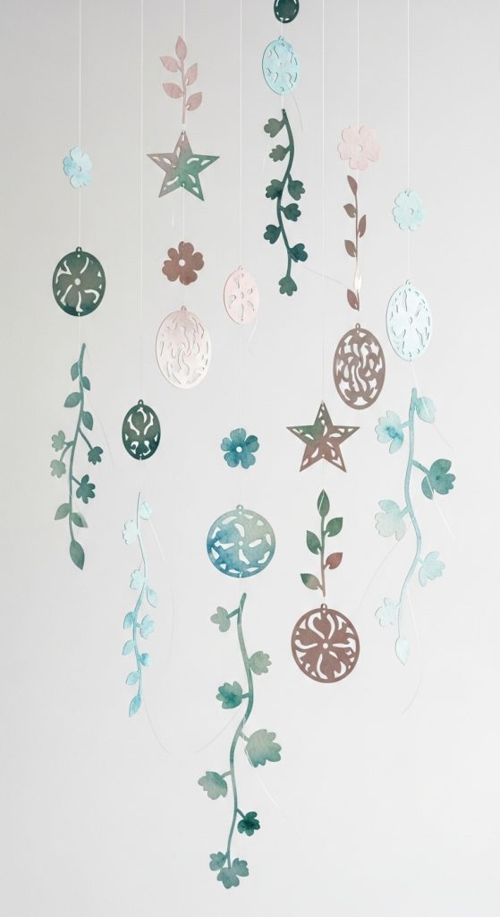 Paper is one of the most accessible materials for DIY decor. For this charm set, cut out shapes such as stars, circles, botanical silhouettes, or abstract forms from cardstock or watercolor paper.