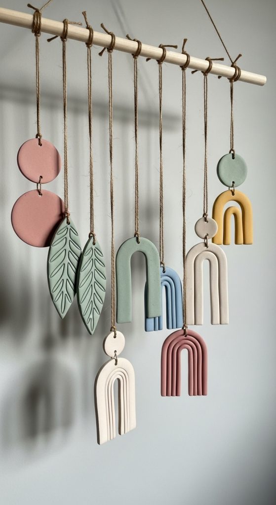You can assemble multiple clay pieces onto a branch, a wooden dowel, or separate strings to create a layered charm display.