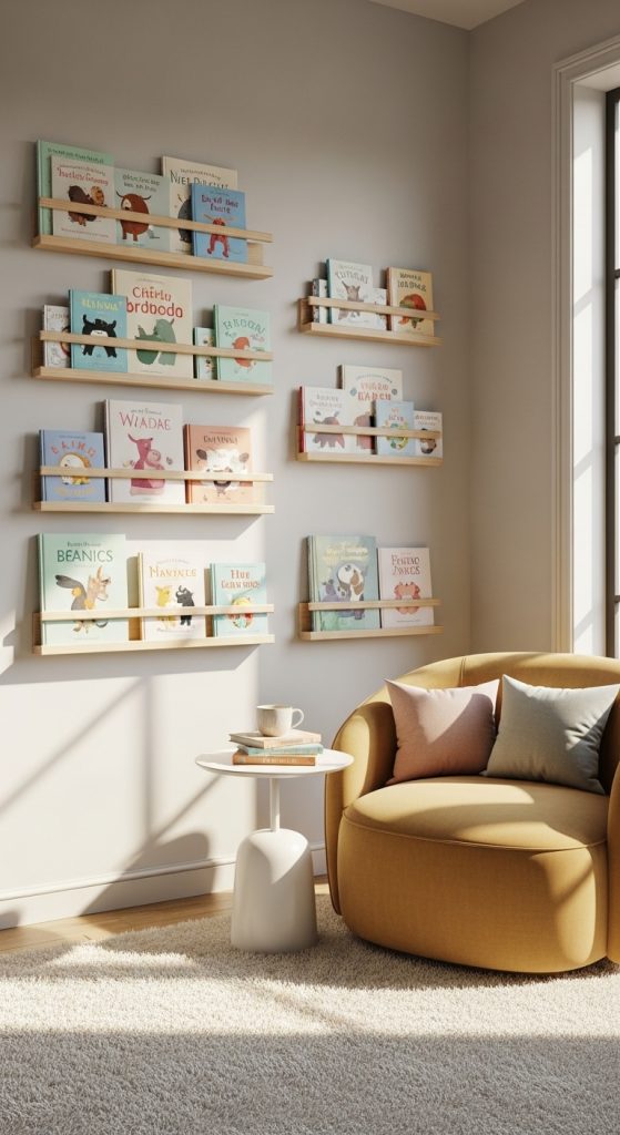 Book ledges offer a clean and modern way to store books, art, or magazines. They are slimmer than regular shelves, which makes them perfect for narrow spaces or long hallways. They also allow you to display book covers like artwork, which is great for childrens rooms or creative spaces.