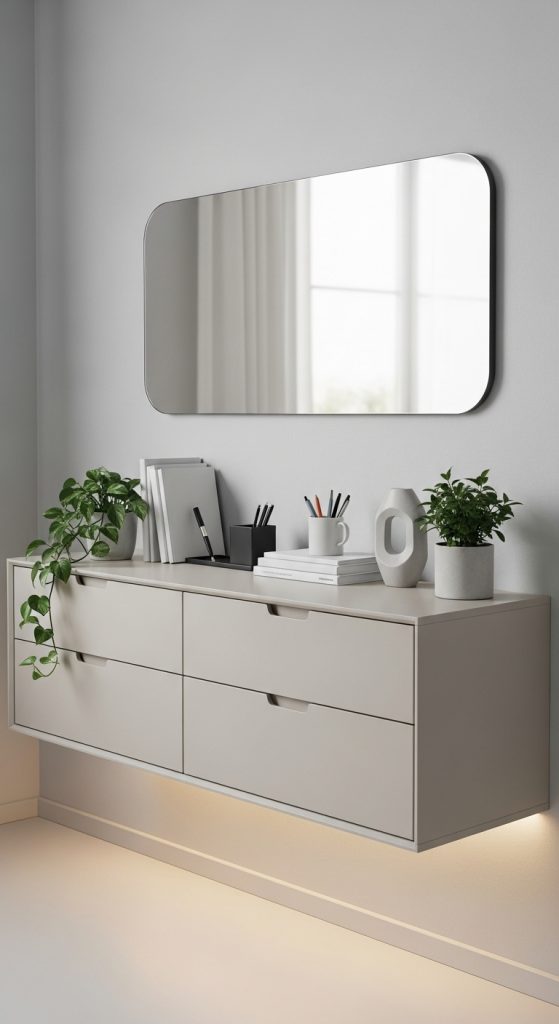 If you want a clean, minimal bedroom look, a floating nightstand is the perfect alternative to bulky bedside tables. It gives you just enough space for your phone, books, glasses, or a small lamp, while keeping your floor clear and open.