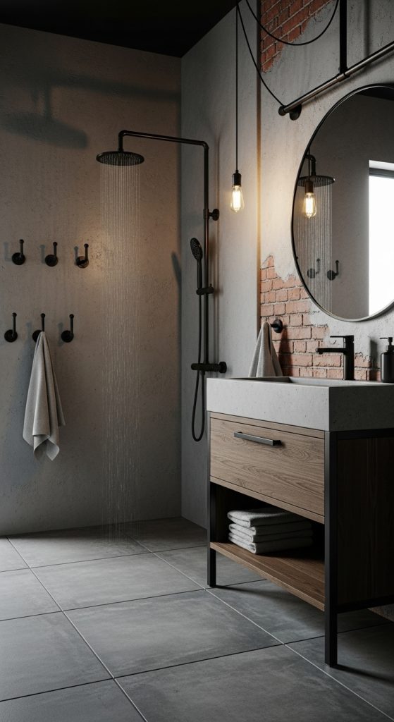 You can buy ready-made industrial pipe hooks or create your own DIY version using small plumbing fittings. They pair beautifully with brick walls, concrete tiles, and matte finishes. These hooks are not just strong and durable—they add texture and contrast to minimalist bathrooms.