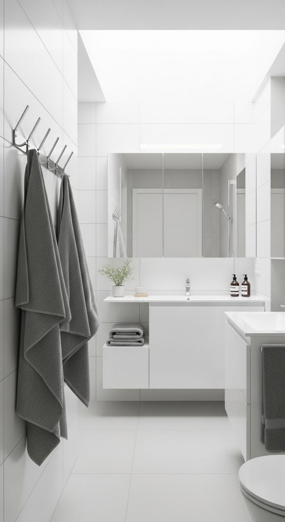 - Tile-Mounted Hooks: Use adhesive hooks designed for tiles—great for renters who can’t drill holes.