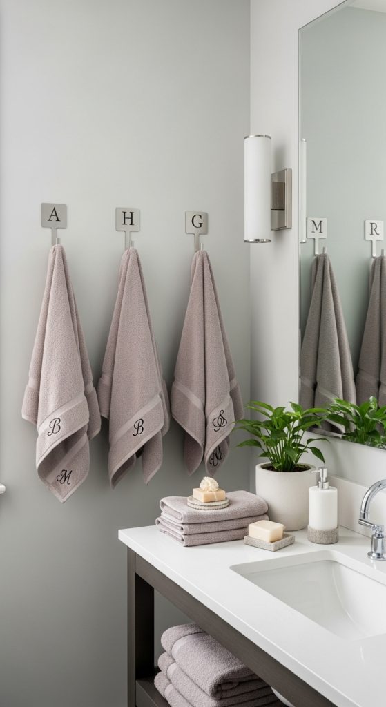 This idea works wonderfully for shared bathrooms—each person gets their own designated towel hook. It’s functional, organized, and uniquely yours.