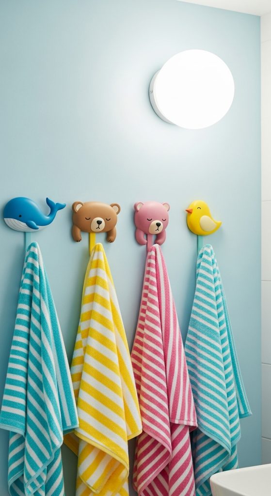 Add a dose of fun and personality to your bathroom with animal-shaped or themed hooks. Whether it’s a whale for a nautical vibe, a bear for a cabin retreat, or a cactus for a southwestern theme, shape hooks are perfect for both kids and adults.