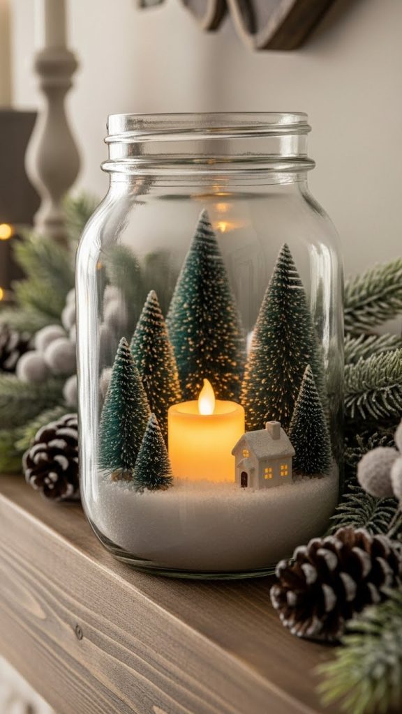 This type of lamp works perfectly on mantels, entryway tables, and shelves. It provides a warm glow that looks especially beautiful at night. You can personalize the display with ribbon, twine, or a painted lid that matches your holiday color scheme. Mason jar lamps are inexpensive, versatile, and easy to create, making them a great project for both beginner and seasoned crafters.