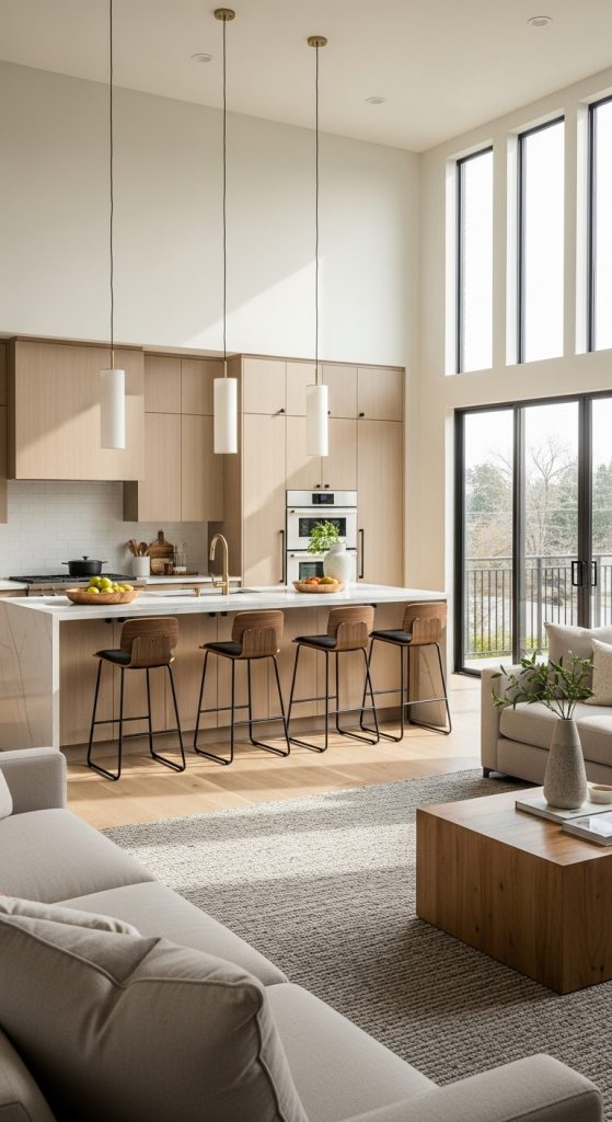 An open-concept modern kitchen not only enhances functionality but also becomes the focal point of the home where family and guests naturally gather.
