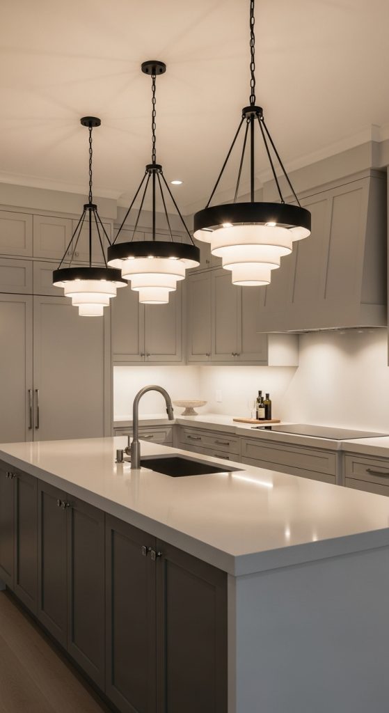 Statement lighting adds character and sophistication to any modern kitchen, making it one of the most effective ways to elevate your space instantly.
