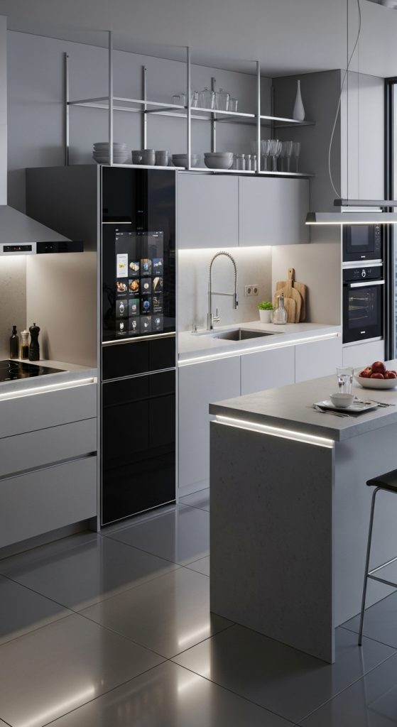 Technology has become an essential part of modern kitchen interiors. Smart kitchens feature state-of-the-art appliances, lighting systems, and storage solutions that make daily life easier and more efficient.