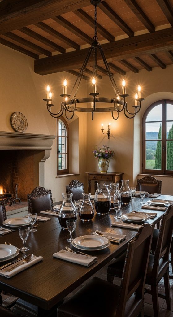 Chandeliers made of Murano glass are iconic in Italian homes, instantly adding glamour to dining rooms and living areas. For a rustic feel, choose wrought-iron candle chandeliers or lantern-style sconces.