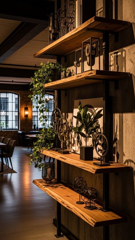 Combining live edge wood with metal brackets creates an industrial yet warm look. This style works beautifully in lofts, modern homes, and urban apartments.