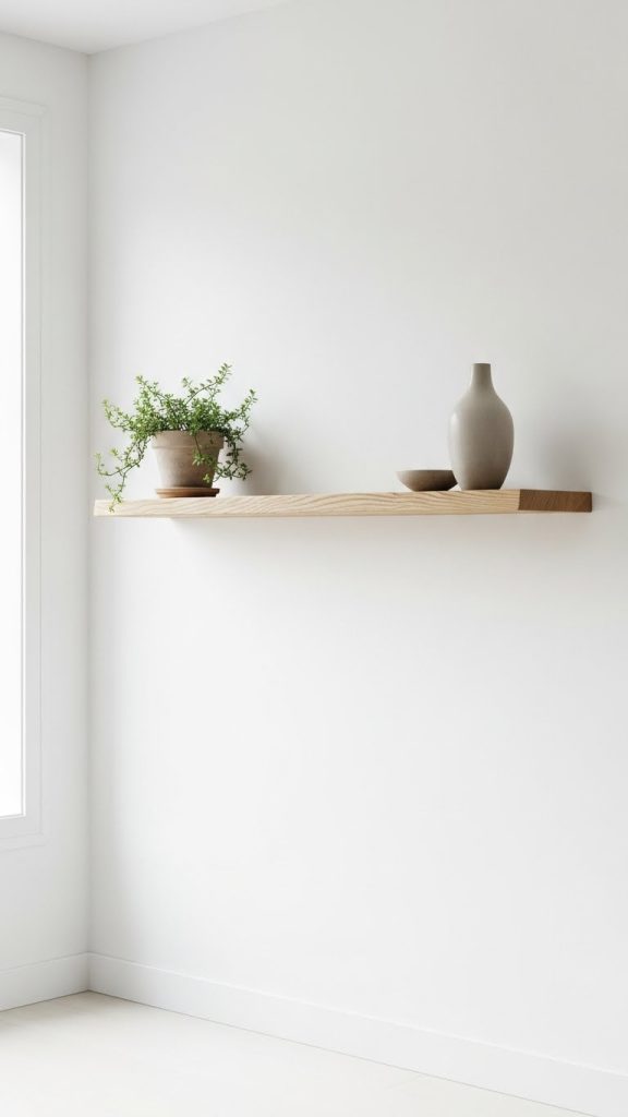 Choose a wood with a subtle grain such as maple or light oak for a clean look. Keep the brackets hidden to maintain a floating effect. These shelves work beautifully in modern living rooms, entryways, and even bedrooms.
