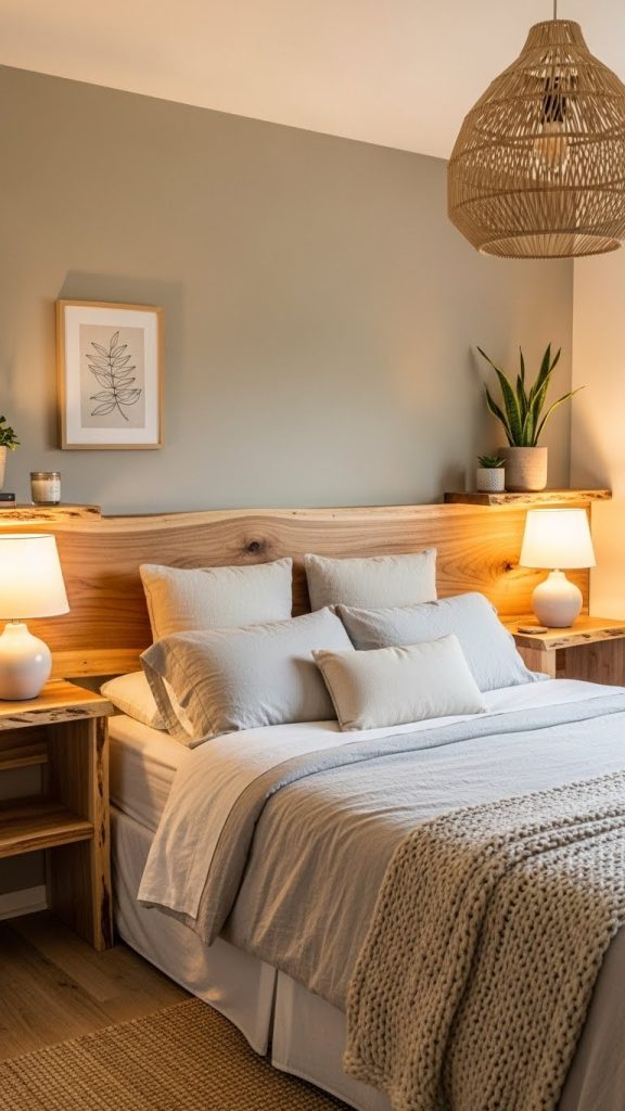 Bedrooms benefit greatly from natural elements. Live edge shelves add warmth and softness, creating a calming environment.