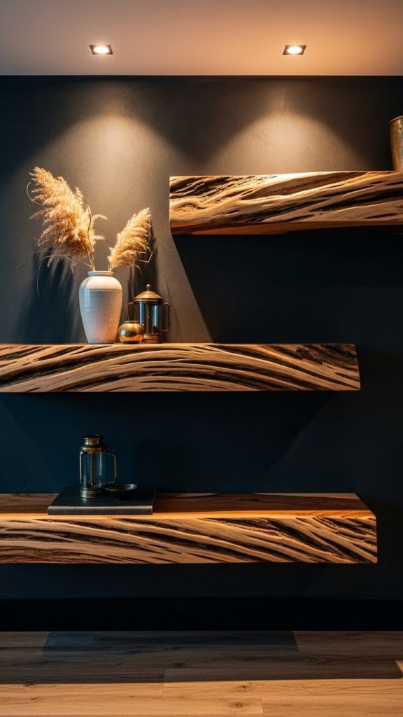 If you are decorating for Pinterest content or upgrading your home, live edge shelves are a design choice that never goes out of style.