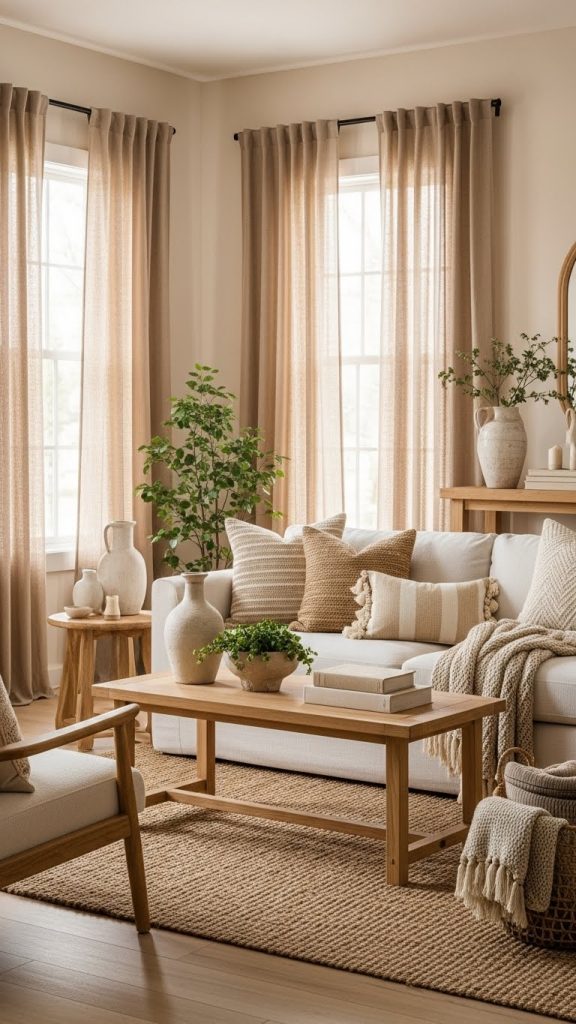 3. Neutral Living Room with Linen Curtains