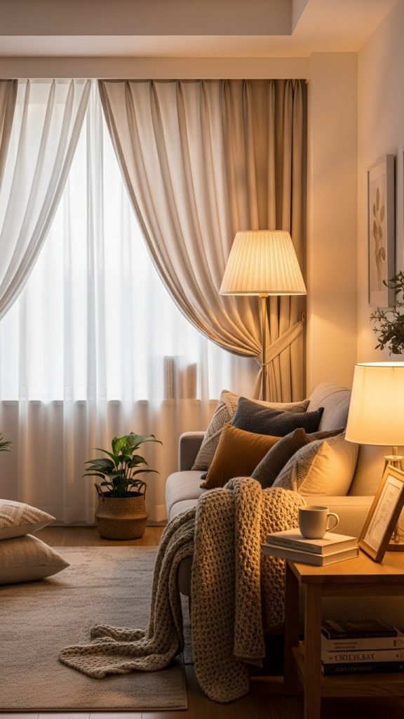 6. Cozy Living Room with Layered Curtains