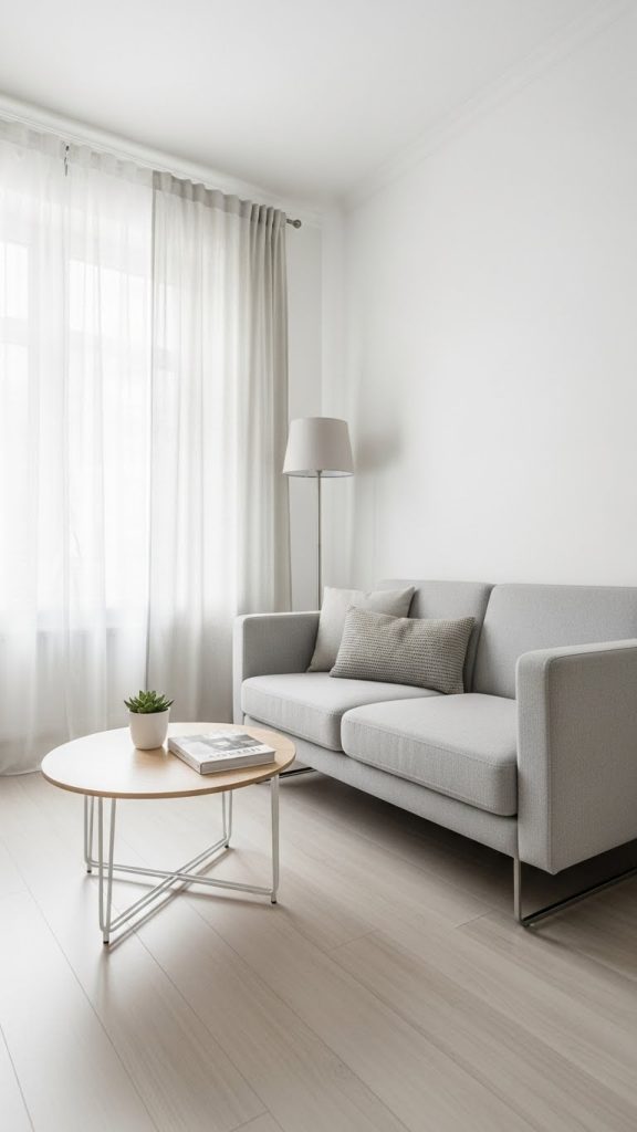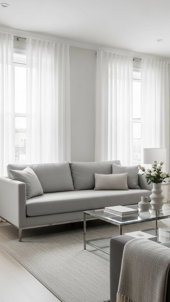1. Modern Minimal Living Room with Sheer Curtains