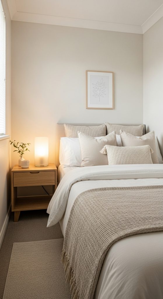 Neutral tiny rooms are perfect for anyone who prefers a calm, clean, and timeless aesthetic. Beige, cream, taupe, and warm white create a naturally relaxing atmosphere. When the room is small, neutral tones help the space feel cohesive and uncluttered.
