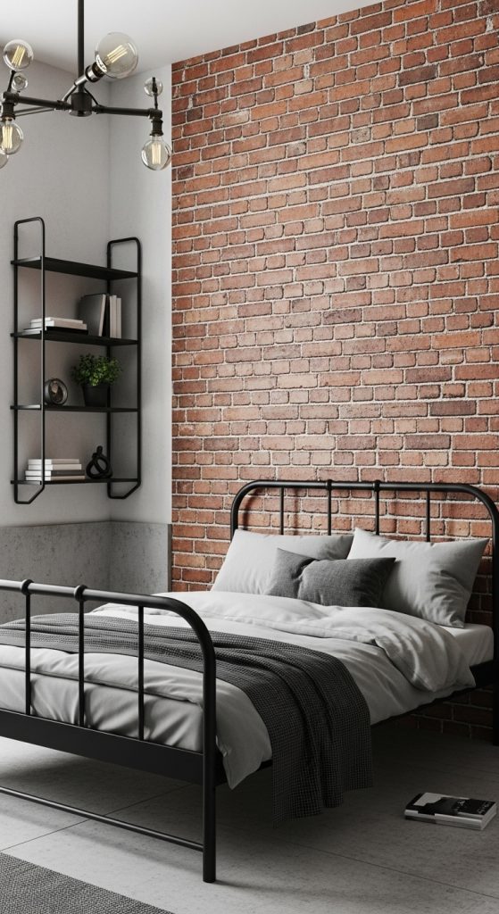 If you love edgy, urban aesthetics, the industrial modern tiny room is perfect. This style works well in apartments or rooms with exposed elements like concrete walls, brick textures, or metal frames. Even if your room does not naturally have industrial features, you can create the look through decor choices.