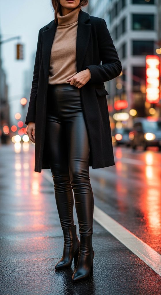 2. Leather Leggings with a Turtleneck