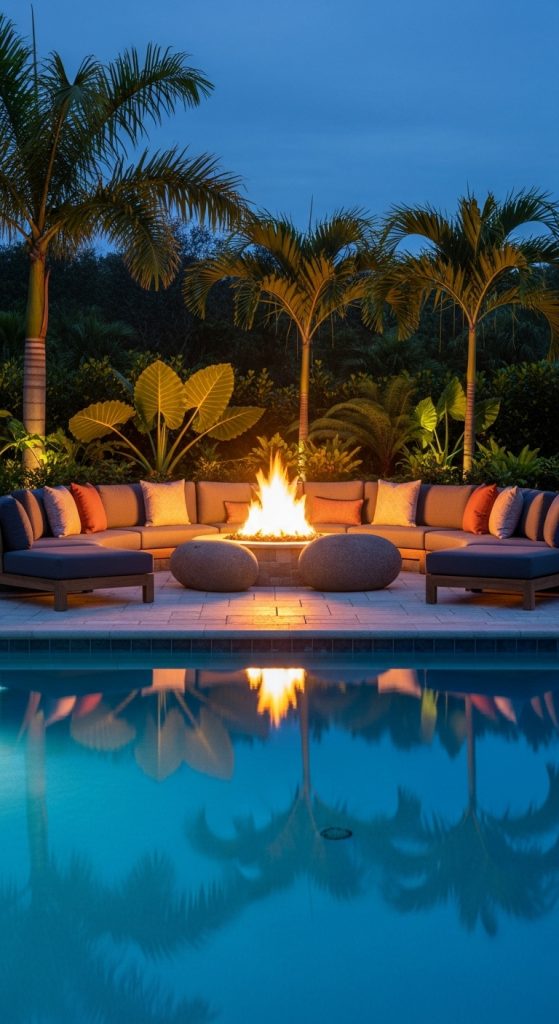 An outdoor lounge area can turn your poolside into a social hub. Arrange comfortable seating around a fire pit or coffee table to encourage conversation and relaxation.