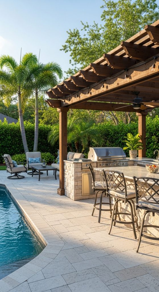 For those who love entertaining, an outdoor kitchen or bar can be a game changer. It turns your pool patio into a multifunctional space for dining and gatherings.