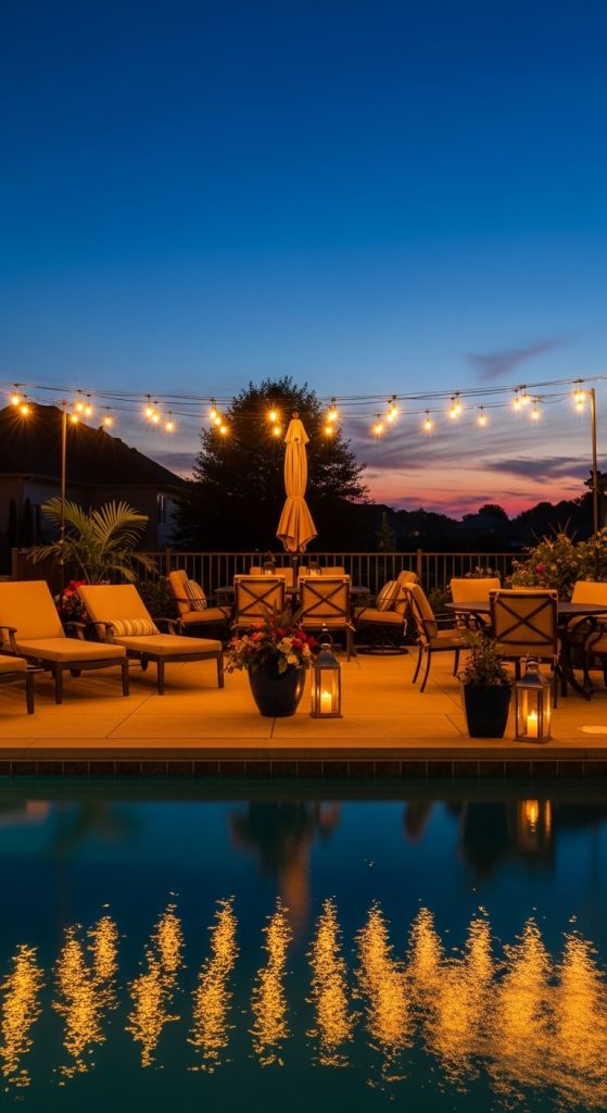 Lighting is one of the most effective ways to elevate your pool patio ambiance. It transforms the space after sunset and makes it usable for evening gatherings.