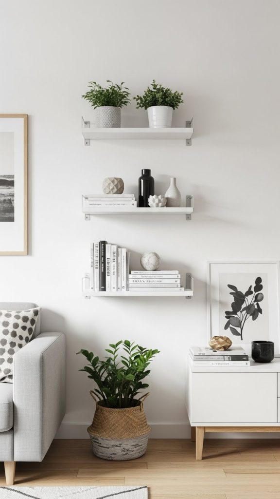 Adhesive wall shelves are ideal for small apartments and rental homes where drilling is not allowed. They help you display decor while keeping surfaces clutter free.