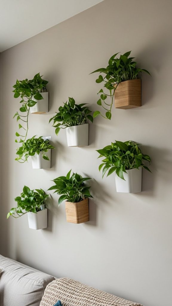 Adding greenery to walls brings life and freshness to interiors. Wall mounted plants using removable hooks or adhesive planters offer a damage free way to incorporate nature.