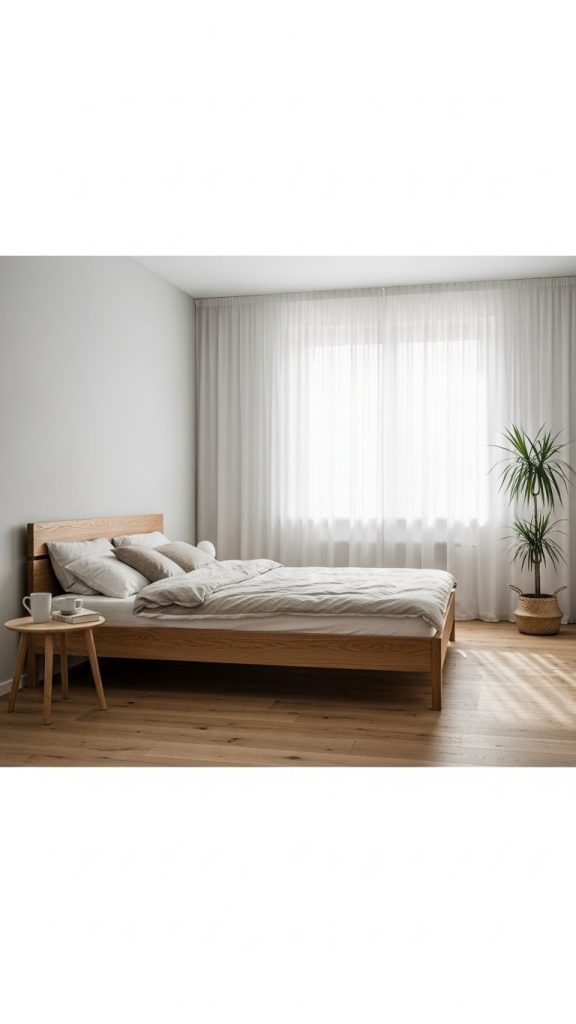 Pair the bed with a plain headboard or no headboard at all. Keep the mattress height comfortable and avoid bulky storage beds if you want a truly minimal look. This type of bed fits perfectly in modern and Scandinavian style bedrooms.