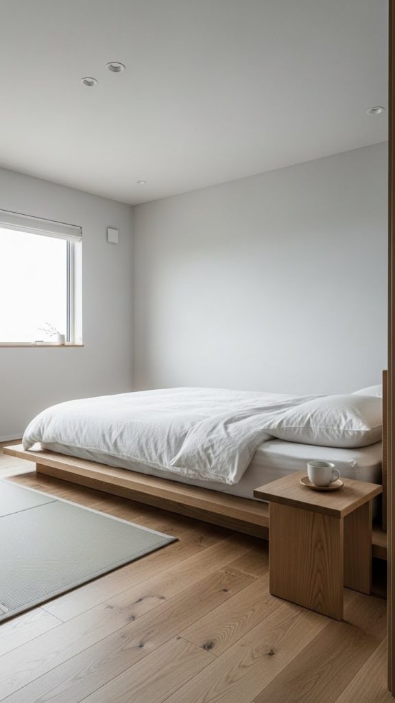 Choose a platform bed in wood or matte finished materials and pair it with neutral rugs and minimal furniture for a balanced look.