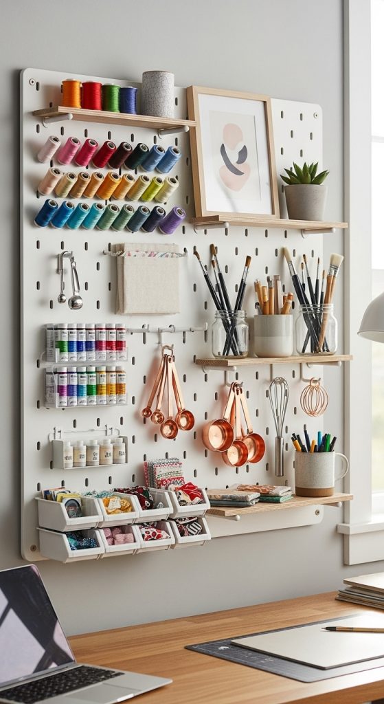 The best part is the flexibility. If you move things around, buy new tools, or change your decor, the pegboard adapts instantly. This prevents clutter from piling up and keeps your essentials visible yet organized.