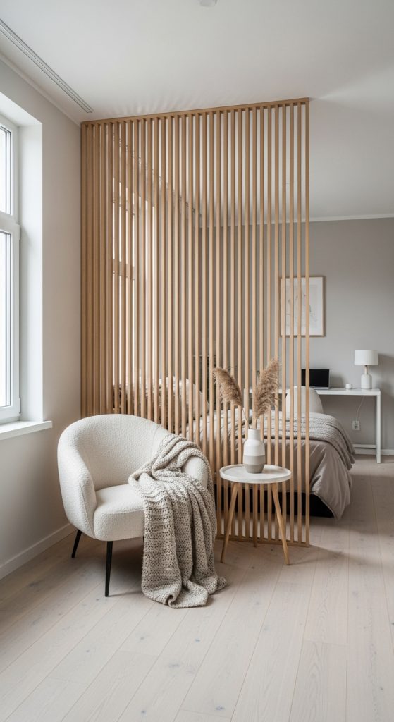 A lightweight, foldable divider is ideal for renters and those who frequently rearrange their rooms. Add soft colors or natural textures to keep the space feeling open rather than closed off.